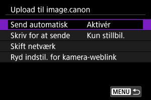 - [Når kameraet tændes]: Automatisk afsendelse starter, når videokameraet bliver tændt.
