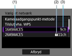 Vælg [Kameraadgangspunkt-metode] på skærmen [Vælg et netværk].