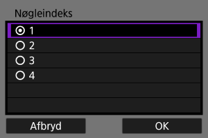 - Skærmen [Nøgleindeks] vises for WEP-krypterede adgangspunkter.