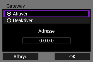 - Hvis du vil bruge en gateway, skal du vælge [Aktivér] og derefter vælge [Adresse].