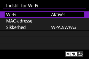 Vælg den Sikkerhed-protokol, der skal bruges, når du opretter forbindelse i videokameraadgangspunkttilstand.
