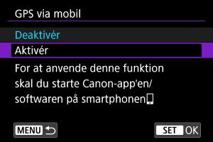 - Smartphonen kan kun hente positionsoplysninger, når den er parret med videokameraet via Bluetooth.