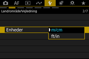 Du kan ændre enhederne for afstandsindikatoren, der vises ved zoom eller manuel fokus, fra [m/cm] til [fod/tommer].