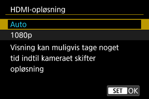 Indstil den billedoutputopløsning, der bruges, når videokameraet er forbundet til et tv-apparat eller en ekstern optagelsesenhed med et HDMI-kabel.