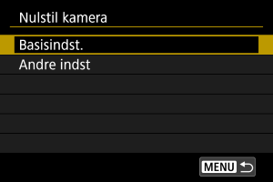 Videokameraets indstillinger for optagelsesfunktioner og menufunktioner kan sættes tilbage til standardindstillingerne.