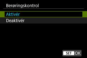 - Hvis du vil deaktivere betjeninger via touch, skal du vælge [Deaktivér].