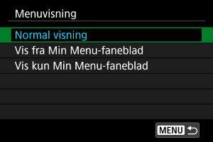 Du kan vælge [Menuvisning] for at indstille den menuskærm, der skal vises først, når du trykker på knappen .