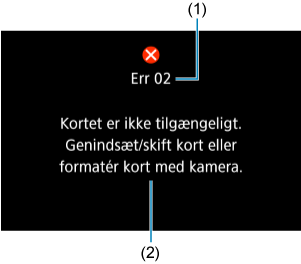 Hvis der er et problem med videokameraet, vises der en fejlmeddelelse. Følg vejledningen på skærmen.