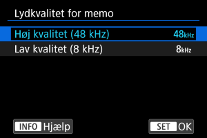 Du kan indstille lydkvaliteten for optagelse af stemmememoer.