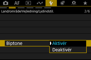Deaktiverer biptoner til fokusering, lukkertid med selvudløser og touch-betjening.