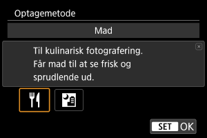 , skal du indstille mod [Varm tone] (rød) for at øge det rødlige skær i maden, eller indstille mod [Kølig tone] (blå) for at reducere et overdrevent rødt skær.