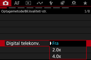 - Optagelsesforstørrelse justeres ikke, når [Fra] er valgt.