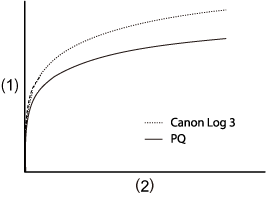 - Med Canon Log kan himlen, hvide vægge og lignende motiver blive påvirket af støj eller ujævne gradationer, eksponering eller farve, afhængigt af motivet eller optagelsesforholdene. Bånd eller støj kan også være synlige i mørke billedområder.