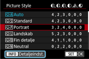- Vælg den Picture Style, der skal justeres, og tryk derefter på knappen INFO.