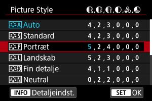 - Vælg en Picture Style, og tryk derefter på knappen INFO.