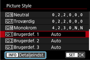 - Du kan finde flere oplysninger under Picture Style-tilpasning.
