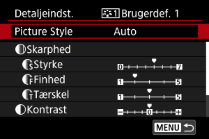 - Standard-Picture Style vises til højre for [Brugerdef. *].