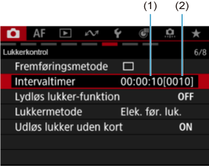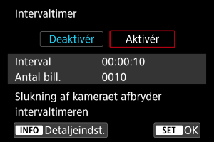 Indstillingerne for interval-timeren vil blive vist på menuskærmen.