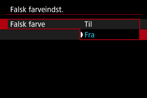 Følgende funktioner er ikke tilgængelige, når kameraet er indstillet til brug med falske farver.