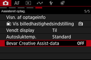 Ved at gemme Creative Assist-indstillinger, der bruges i []-metoden, kan du springe trinnet med at vælge effekten igen over ved efterfølgende optagelser.