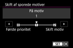 - Hvis du vil holde fokus på det hovedmotiv, der først blev registret, kan du overveje at bruge [Første prioritet] eller [På motiv].