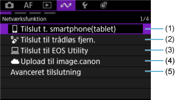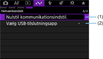 - Nogle menupunkter kan ikke konfigureres, når kameraet er forbundet til en computer eller andre enheder via et interfacekabel.