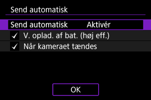 - [Når kameraet tændes]: Automatisk afsendelse starter, når kameraet tændes.