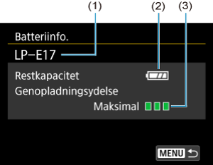 Du kan kontrollere forholdene for det batteri, du bruger på skærmen.