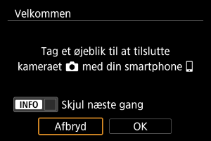 Instruktioner i at oprette forbindelse til en smartphone vises, hvis du vælger [OK], når opsætningsskærmen vises ().