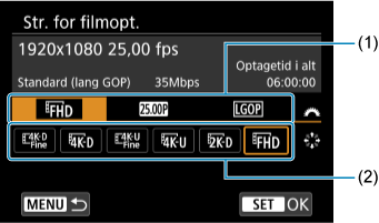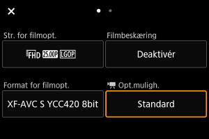 Som ved stillbilledoptagelse skal du trykke på knappen for at åbne Quick Control-skærmen. Hvert tryk på knappen