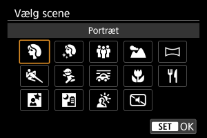 skal du vælge en optagelsesmetode efter at have trykket på ikonet øverst til venstre eller åbnet skærmbilledet [Vælg scene] i [