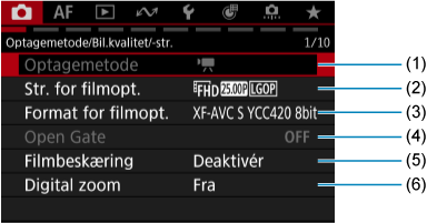 Du kan finde flere oplysninger om ikonerne på skærmen til filmoptagelse under Visning af oplysninger.
