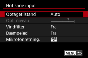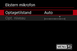 For at konfigurere indstillinger for eksterne mikrofoner, der bruger ekstern mikrofon IN.