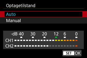 Tilgængelig, når [Optagetilstand] er indstillet til [Manual].