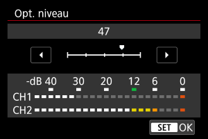 - Optagelsesniveauerne vises i niveaumåleren nederst på skærmen.