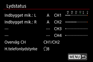 - [Overvåg CH] angiver de kanaler, der er indstillet i [Optagels.skærm CH] for [Hovedtelefoner] i [
