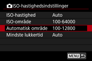 Du kan indstille det automatiske ISO-område for ISO Auto.