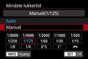 Indstil den ønskede mindste lukkertid.