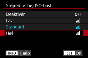 1. Vælg [Optagelse: Støjred. v. høj ISO-hast.] (, ).