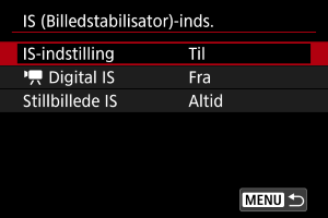 Digital IS] til [Til] eller [Forbedret] også indstille [IS-indstilling] til [Til].