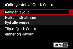 - Vælg [Ryd alle emner] for at fjerne alle punkter fra layoutet, så der ikke vises en Quick Control-skærm, når der trykkes på knappen