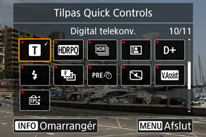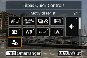 Quick Control-punkter og layout kan brugerdefineres.