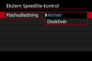 For at aktivere flashfotografering skal du indstille [Aktivér]. For kun at aktivere AF-hjælpelyset på Speedlite skal du indstille til [Deaktivér].