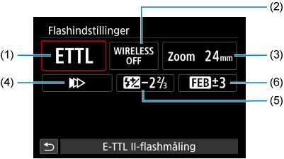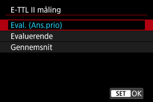 - Tilgængelig, når [Flashindstill.] er indstillet til [E-TTL II-flashmåling].