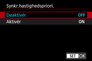 - Der kan forekomme undereksponering under visse optagelsesforhold, når [Synkr.hastighedspriori.] er indstillet til [Aktivér].