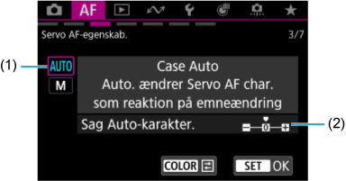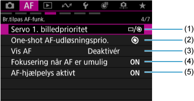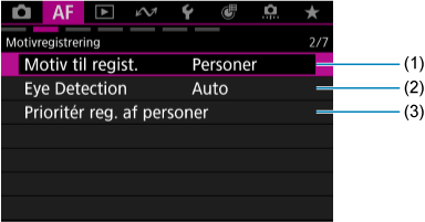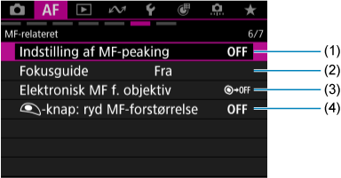 - [Fokusmetode] vises, når der bruges objektiver uden fokusmetodevælger.