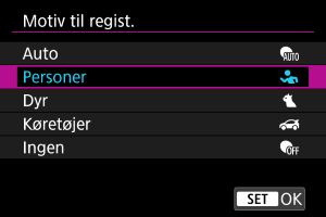Automatisk valg af hovedmotiv registrerer personer, dyr eller køretøjer i scenen.