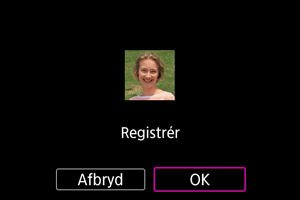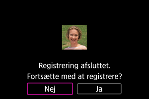 Når følgende skærm vises, kan du registrere en anden persons ansigt.