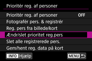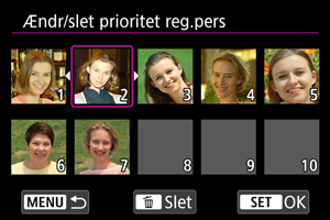 Du kan ændre registreringsprioritet ved at ændres rækkefølgen af registrerede personer. Du kan også slette registrerede personer.