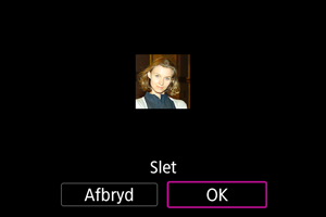 - Kameraet gemmer ansigtsbilleder og relaterede oplysninger, der er registreret i forbindelse med brug af denne funktion. Slet alle registrerede oplysninger, inden du bortskaffer kameraet eller overgiver ejerskabet.